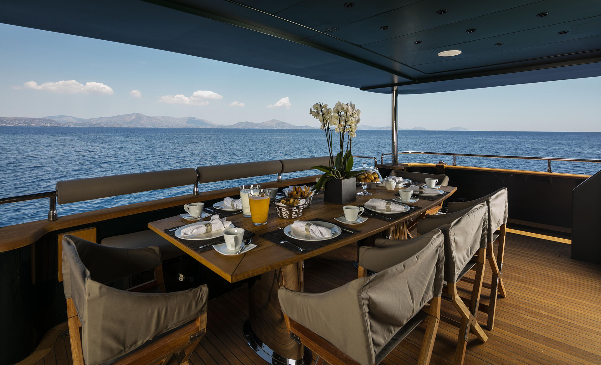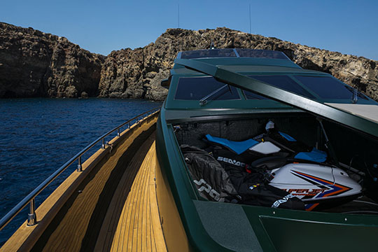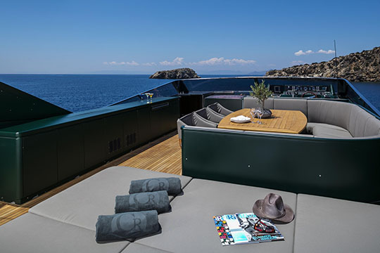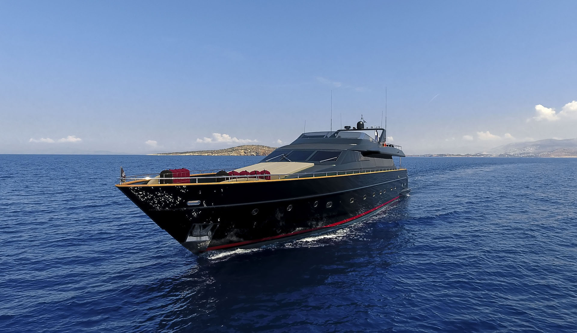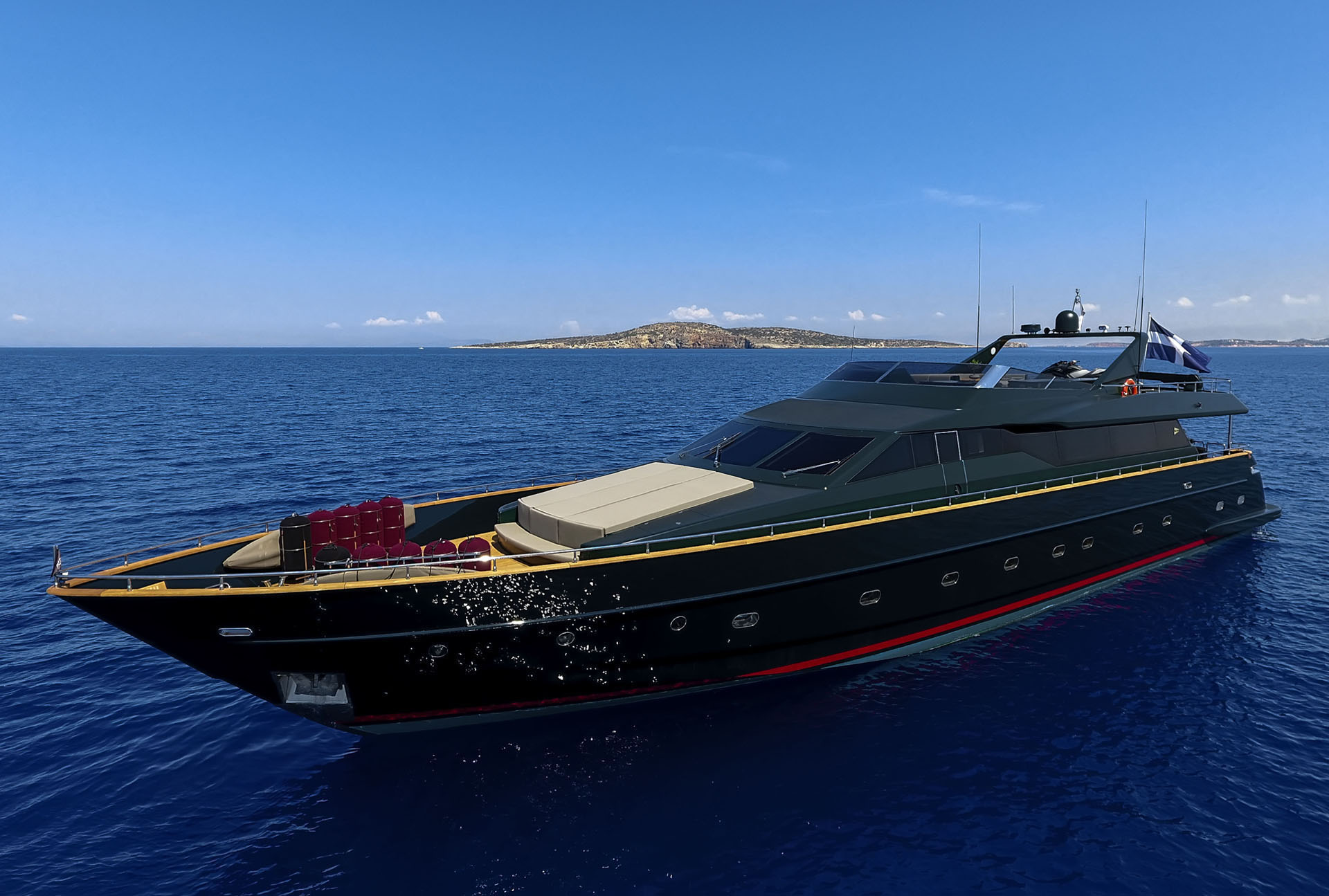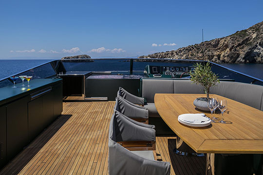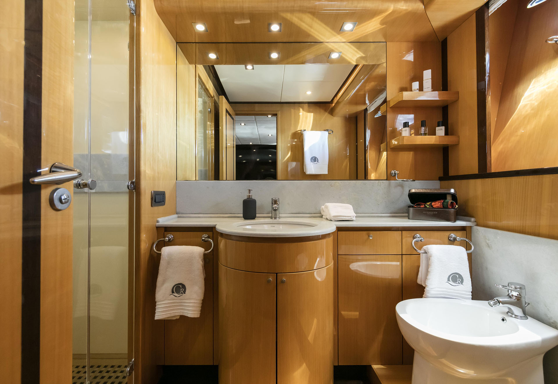 One Master cabin with king size bed and en-suite facilities. One VIP cabin with queen size bed and en-suite facilities. One double cabin with a double bed and an additional Pullman berth with en-suite facilities. Two twin cabins, each with one additional Pullman berth and en-suite facilities, that can be also converted to doubles. A 6th cabin/playroom is available with an upper/lower berths sharing a W.C. with another cabin.